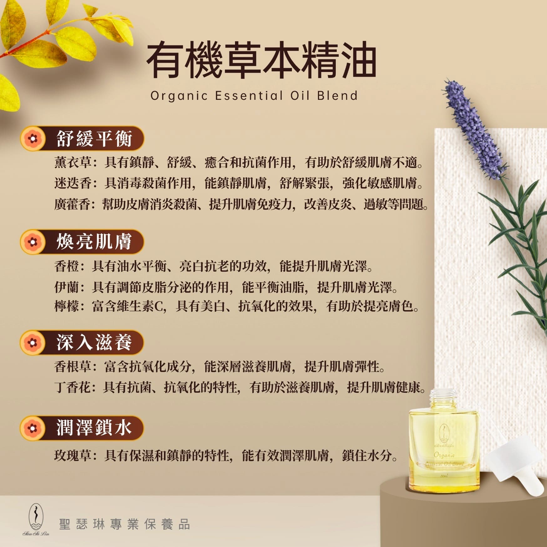 歐盟認證有機草本精油,給不安定的肌膚一個好選擇,細緻質地能深入潤澤並鎖住水分。在修護中完成深度養護,讓每一寸肌膚綻放健康光澤。